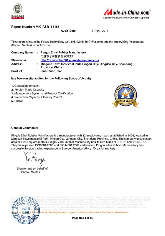平度市子海橡胶制品加工厂始建于1995年,下设宁夏宁杰子海橡胶有限公司,公司座落于中国著名的海滨旅游胜地——青岛,交通便利,信息通畅。 现公司注册资本5000万元,资产总额1.2亿元,占地面积3万多平方米,员工300余人,是一家集工程机械轮胎、农业轮胎、特种工业轮胎、叉车轮胎、卡车轮胎,全系列内胎和垫带生产于一体的综合型进出口生产企业。截止2020年10月,经过近30年的发展和扩张,为了满足日益增长的客户需求,在宁夏新建了内胎工厂——宁夏宁杰子海橡胶有限公司,平均日产内胎10000 条以上。公司先后通过ISO9001质量体系认证、ISO14001环保体系认证、OHSAS18001健康管理体系认证、3C强制性产品认证、美国DOT认证,内胎安全认证等其它国内外相关认证,并且全面推行TS16949质量管理体系,实行标准化作业,建立了健全完善的检验体制,是平度市橡胶协会副会长单位,国家AAA级标准化良好行为企业。我公司自成立以来始终坚持“质量第一,客户至上”的办厂宗旨,“诚实信用、互利互惠”的经营方针,现已在国内外建立了稳固有效的营销网络和服务体系,产品已以销往全国29个省、市、自治区,出口30多个国家和地区,以其卓越的品质和完备的售后服务体系赢得了国内外客户的高度信赖,在国内外市场上享有较高声誉。真诚的欢迎国内外各界朋友来我公司洽谈合作,共创辉煌!